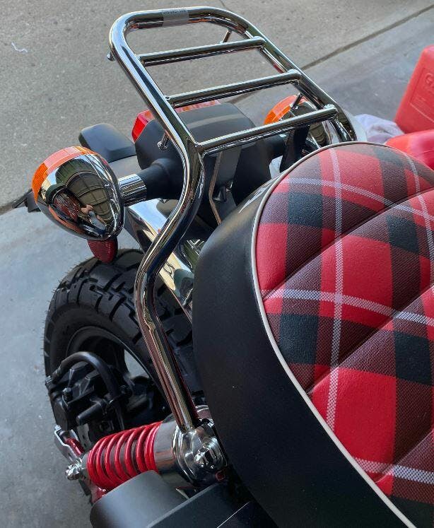 Primate's Monkey 125 Rear Rack is designed to securely carry up to 5kg with ease. Featuring sturdy tie down pins, the stylish black and chrome designs are sure to complement any look. The Black or Chrome finish also ensures a look that will match any bike. For reliable support on all your journeys, trust Primate.